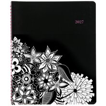 Cambridge® FloraDoodle 2027 Weekly Monthly Appointment Book Planner, Black/White, Large, 8 1/2" x 11"