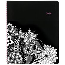 Cambridge® FloraDoodle 2026 Weekly Monthly Appointment Book Planner, Black/White, Large, 8 1/2" x 11"